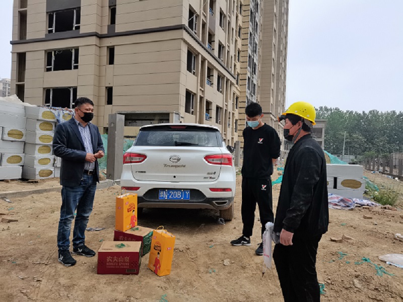 在“五一國際勞動節(jié)”來臨之際,4月29日張松峰總經(jīng)理深入施工一下線現(xiàn)場慰問,為戰(zhàn)斗在一線的員工去關(guān)懷與問候,激勵他們以更加飽滿的激情投入到本職崗位中。并囑咐在工作中一定要注意身體,做好安全防護(hù)工作。此次慰問讓一線員工深切的感受到領(lǐng)導(dǎo)的關(guān)懷,大家表示一定會鼓足干勁,更加安全、高效的工作,全力打造精品工程。